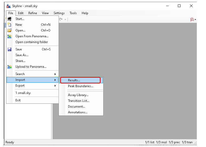 Opening a file(s) will download it to the local machine and import it into the current Skyline document.