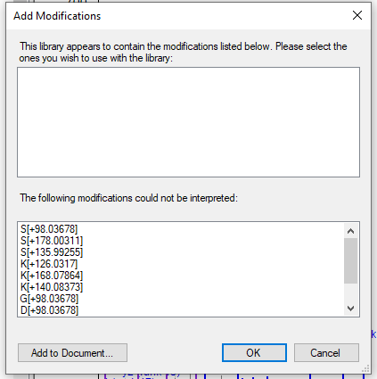Thank you so much for this quick response!! Just to be clear: the problem is that Skyline changes an N-acetyl into a mass of 98Da because Skyline adds an N-terminal propionylation, most probably because the Mascot DAT file has it set to fixed? We have set the N-terminal propionyl to variable in Skyline, but that does not seem to make a difference. In other words: that 98Da is not on the peptide N-terminus in real life (or in the Mascot result for that matter), it is being created by Skyline, so we do not want to create an atomic formula to explain it.
