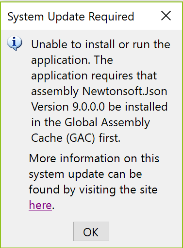 newtonsoft.json.dll is included with the Skyline installer. The GAC is a place for .dll files that are shared between applications. Windows should not be looking for that .dll in the GAC because it should be right there with Skyline.