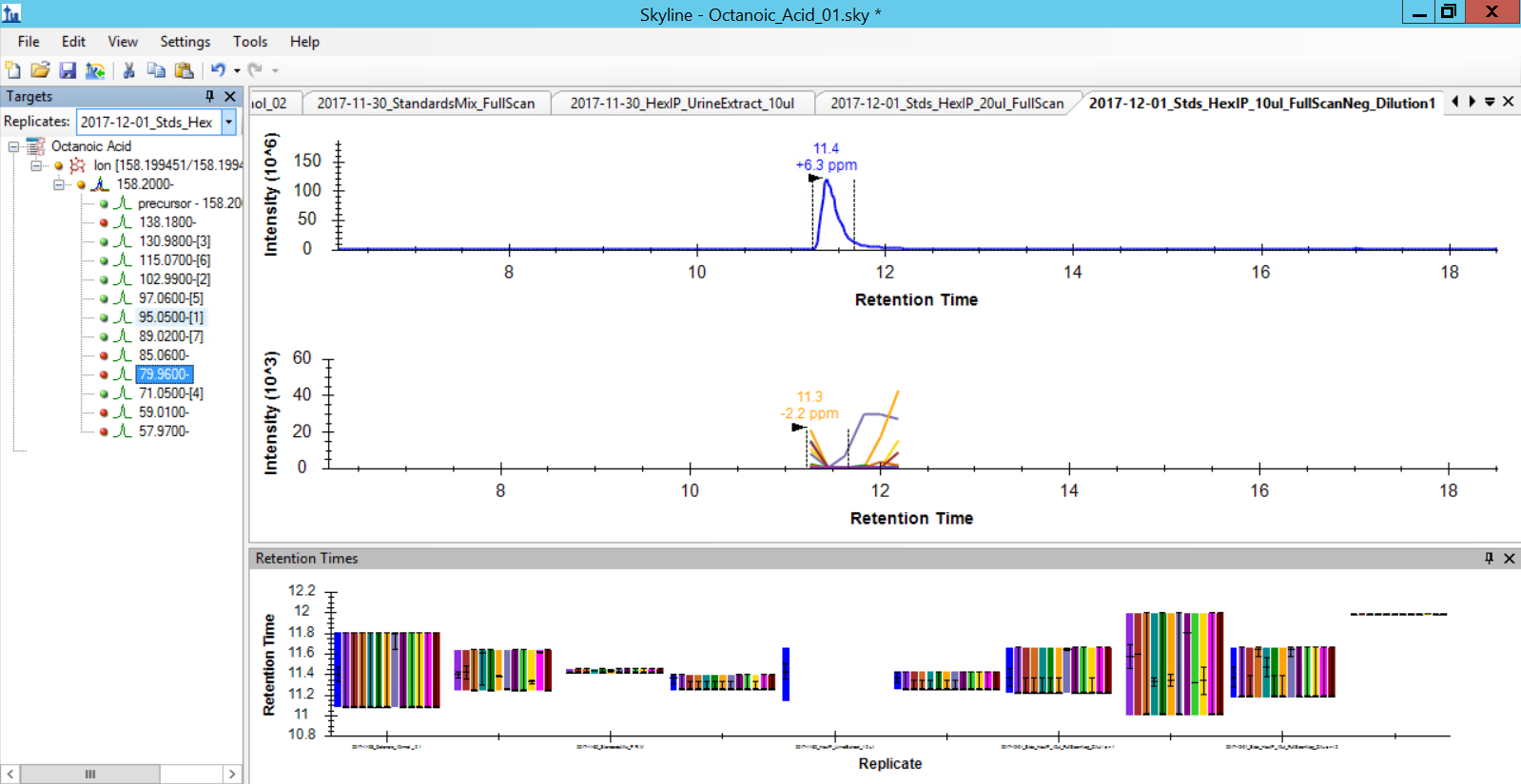 I analysed labelled lipid standards using a DDA experiment on the Q-Exactive machine. I imported my data into Skyline and found that Skyline was only extracting data around a specific time frame. The outcome is that my MS1 data is being extracted beautifully, but my MS2 data looks like a scheduling experiment gone wrong. I have attached a screenshot of my Skyline document. Can anyone advise why Skyline is extracting MS2 data in a limited time frame and not over the whole chromatogram?