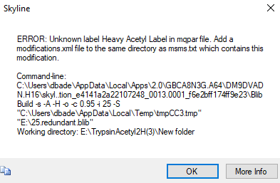 I placed heavy acetylation as a label for this run, in the hopes that the issue involved it being a heavy isotope modification.