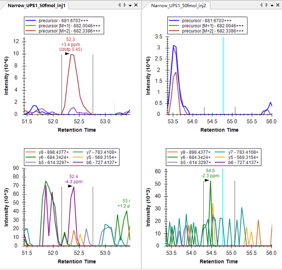 I was expecting that the shapes of precursors' peaks and the shapes of fragment ions' peaks are similar, as shown in the "Good_shape.jpg", you can check "Bad_shape.jpg" to see the bad peak shapes.