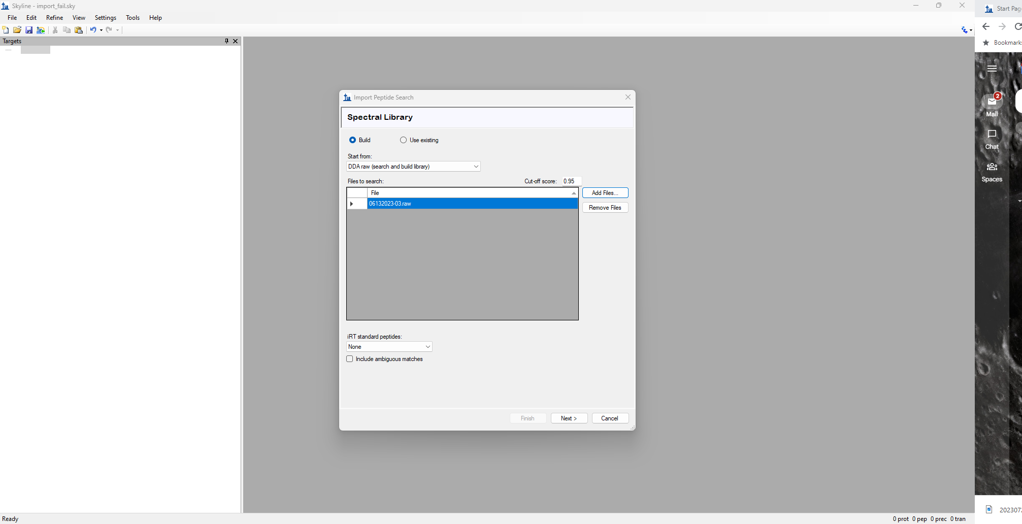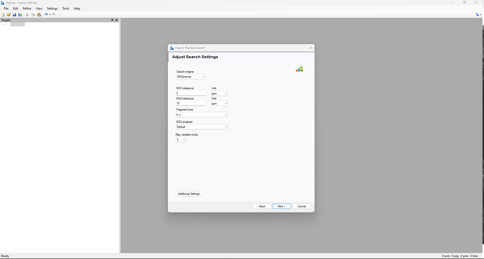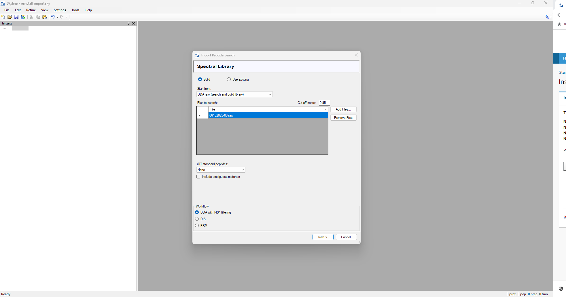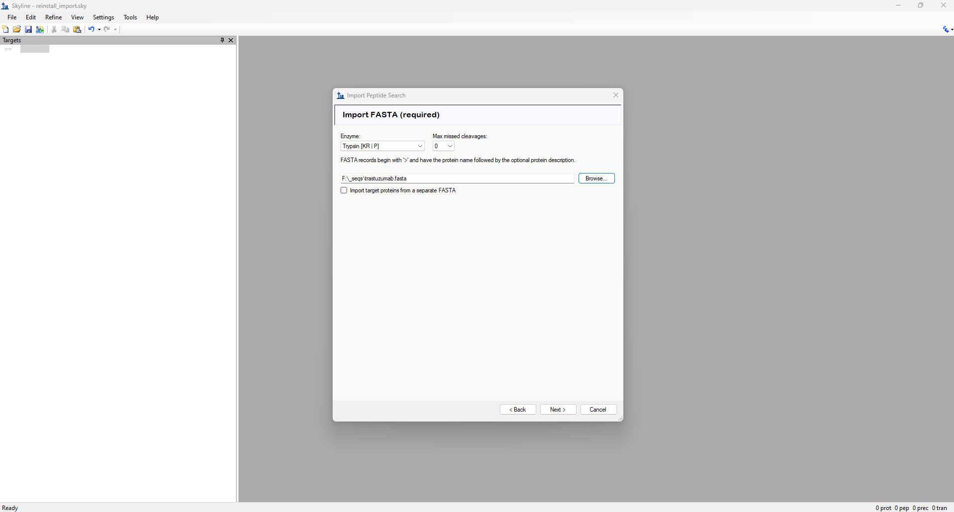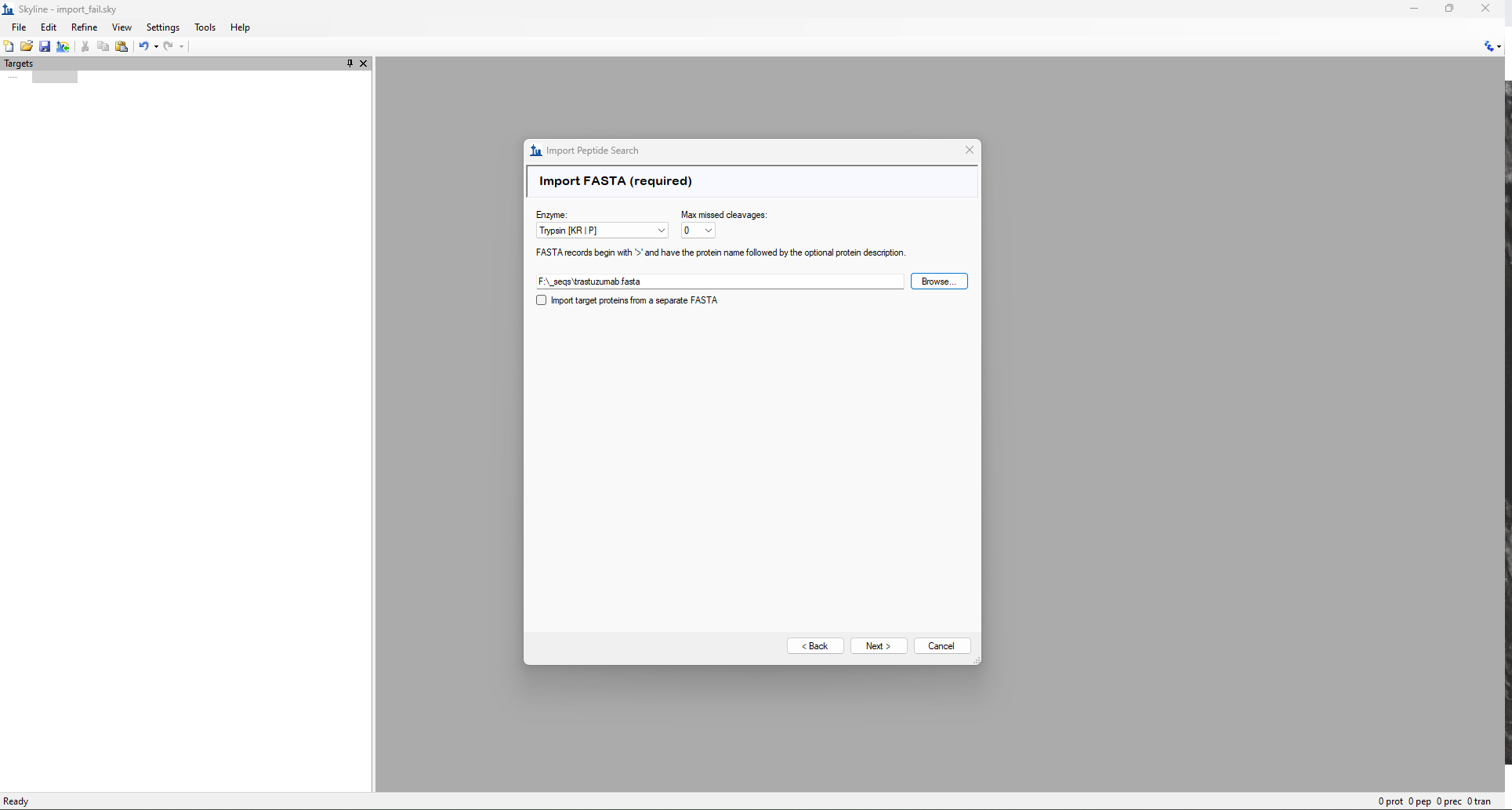Also, just to be clear, the DDA data import that works with the proteome and target FASTA files only works in skyline-daily. It does not work in the current skyline release.