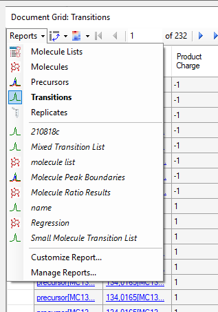 Also, the captions of the columns in the Transition Results report will change so that they say "Molecule" instead of "Peptide".