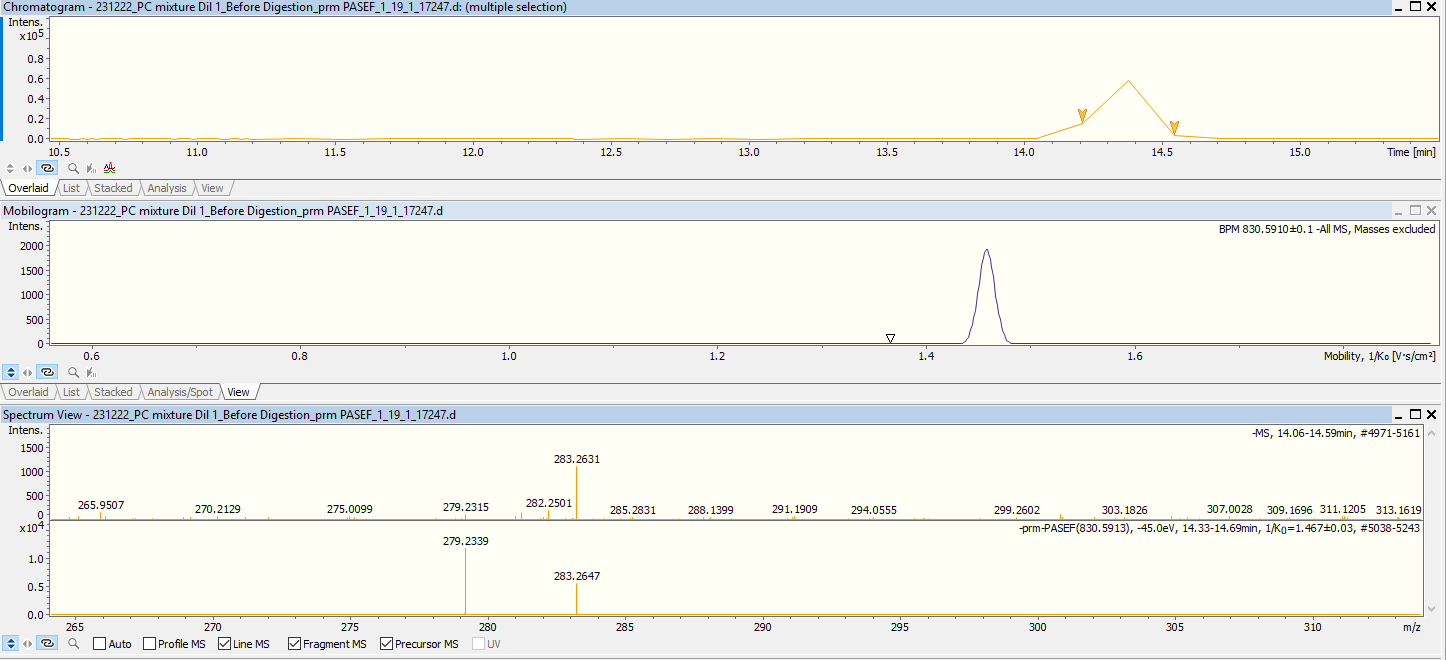 Other times, the problem really is that the mass spectrometer never collected any MS2 spectra which isolated the correct m/z because the instrument method was wrong.