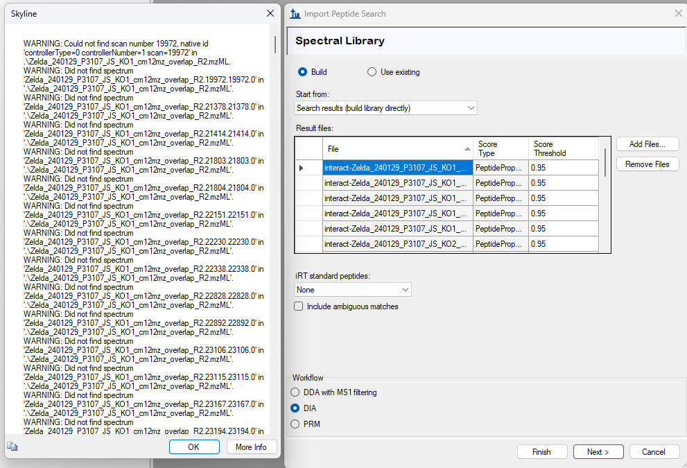I can actually get things to work if I trick BiblioSpec into thinking that this pep.xml file came from XTandem instead of either Peptide Prophet or MSFragger.