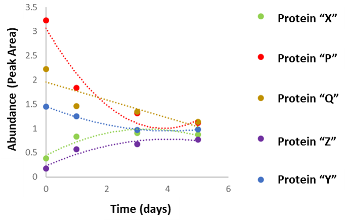 I see MS Excel has several trend-line options; linear, logarithmic, polynomial, exponential, and power functions. What is basis/logic for selecting these functions for biological data. For e.g. I'm interested in understanding the change of peak area of protein vs different time course; my data fitting with polynomial trend-line. how can I compare different samples in this option?