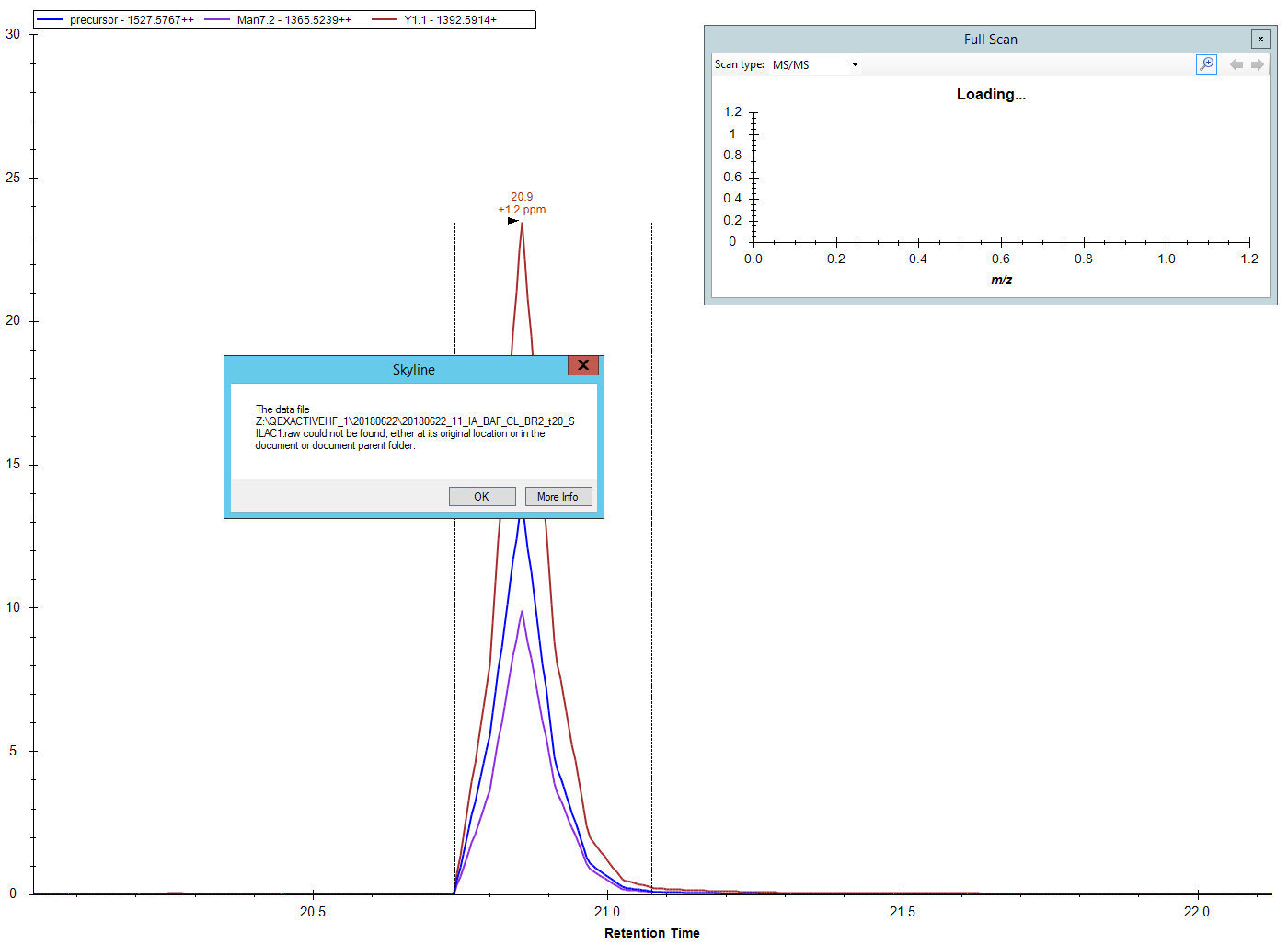 In these cases, Skyline first tries to look for the .raw file in its original location, but, if Skyline does not find the .raw file there, Skyline will also look in the same directory as the .sky file.