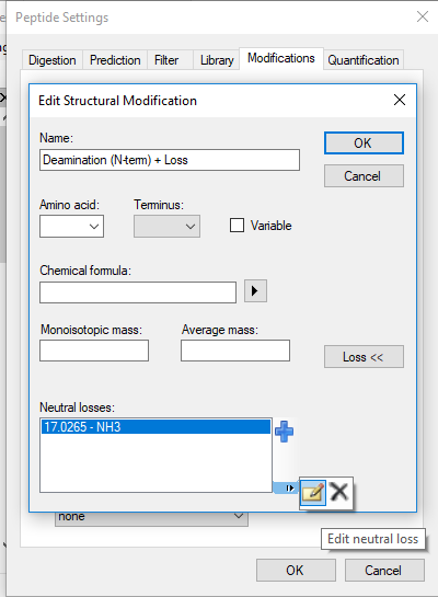 And then you can edit one of your neutral loss modifications (e.g. "Deamidation (N-term) + Loss").