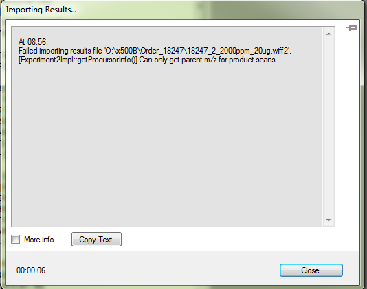 - Importing the file from file->import->results, this lead us a bit further (skyline_wiff2_2), but still no imported files.