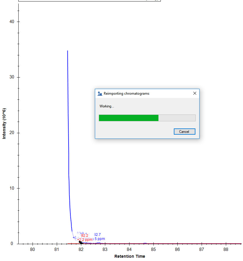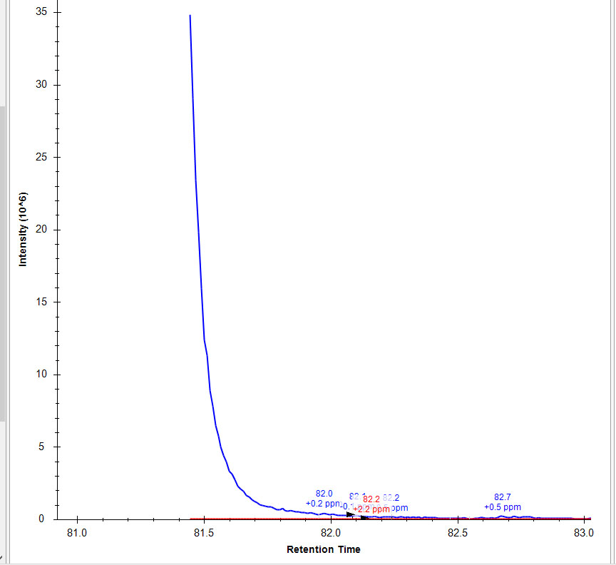 When I import with MS1 filtering (Isotope peaks included:Count, Precursor mass analyzer: Orbitrap, Peaks:3, Resolving power: 60,000@200m/z) and MS/MS filtering (Acquisition method: Targeted, Product mass analyzer: Orbitrap, Resolving power: 60,000@200m/z) I get split peaks on some chromatograms (Untitled1.jpg). If i remove MS/MS filtering and set it to none and reimport my data the full peak is restored (Untitled2.jpg). If I switch back to the original settings (MS1 and MS/MS filtering) and reimport, my peak is again split (Untitled3.jpg). I am using skyline 4.2.0.180305. Split peaks seem to be rare. I have a large document and most peaks are fine. I think that the split peaks occur on singly charged peptides with m/z >1000 but I would need to look into that. Any advice would be appreciated. The reason I tried turning off MS/MS filtering was that I found an old issue that restored a peak under this scenario (https://skyline.ms/issues/home/issues/details.view?issueId=294&_docid=issue%3A294). Am I doing something wrong or is there a bug somewhere in there? Thanks for any advice.