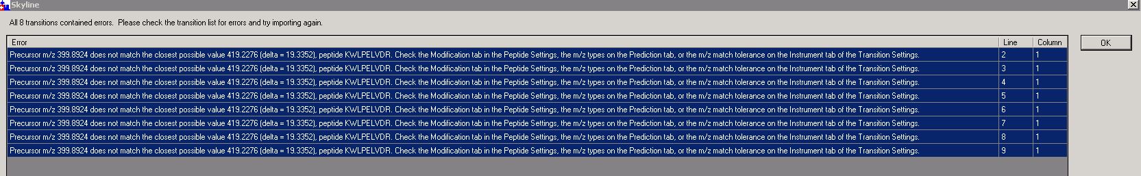 I'm able to import a pep.xml file fine and it finds the succinylation because I've made it a mod in peptide settings but when I import a transition list I don't get that option to add mods that aren't in my document/etc.