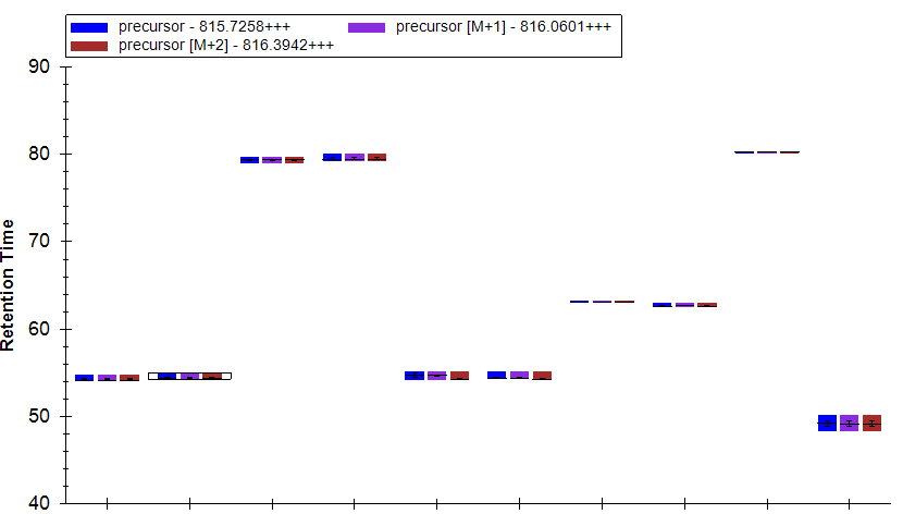 I have 5 samples, 2 replicates each and I would like to visualize in all chromatograms the same peptide at the same RT (please see attached what I have for a prototypical example)... do you know I could I do that?
