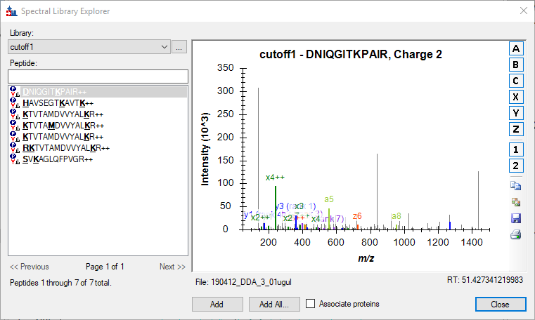 Thank you for the attention. I guess it might be some bug in my PC. I tried to create some libraries with different cut off scores and I got some strange results. When I used the cut off score equal to 1, for instance, I got 7 peptides that are not the best ones. while I tried using the cut off scores of 0 and 0.95 I got the same number of peptides. Do you have any thoughts on that? I am not a specialist so I might missing something.