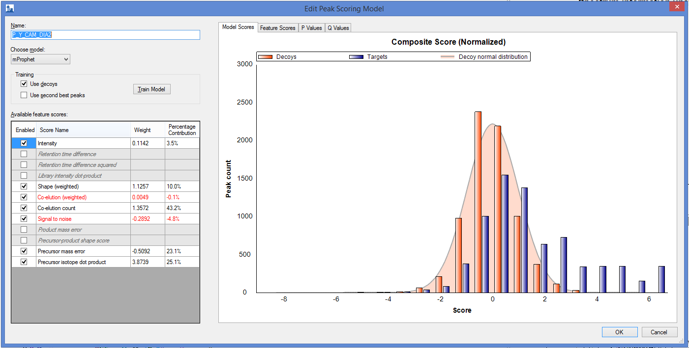 However, weight and % contribution for mProphet features such as "Retention time difference", "Retention time difference Squared" and "Library intensity dot-product" are not calculated. Why so? (Please find the attached mProphet_feature.csv file)