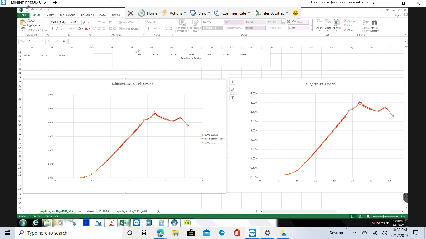 I have a problem calculating the calibration curve. The calculations Skyline does are different from my calculations in Excel.I have entered all the appropriate values for settings and grids The data should match the normalized skyline. Currently they are about a percentage point off, which is substantial. It’s about 20% difference between the two. What can explain this? Regards, |
