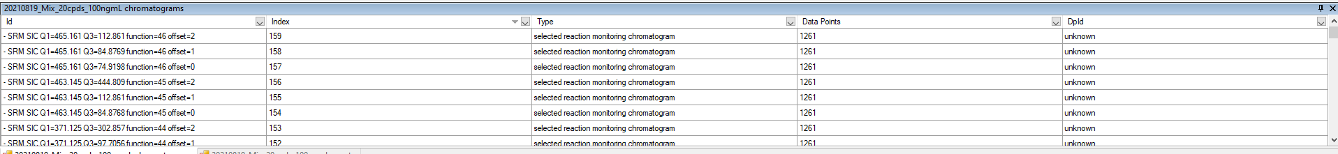 I uploaded the .exp file with the transitions that are contained into the previous Excel file (20210827_Gioele_MRM_transition_list.xlsx). You can find it on http://skyline.ms/files.url, the file is named 20210830_Gioele_MRM.zip and the password to open the archive is uNigE2021.