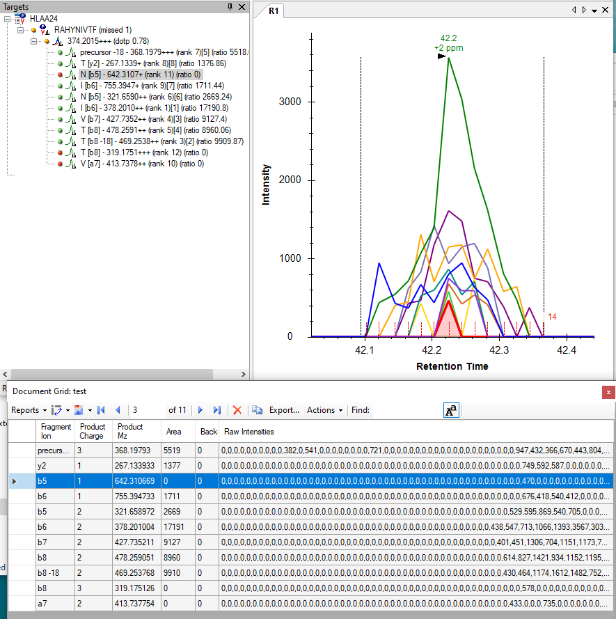 Recently I came across a peptide that had some transitions always marked in red (area 0) even though there is some signal.