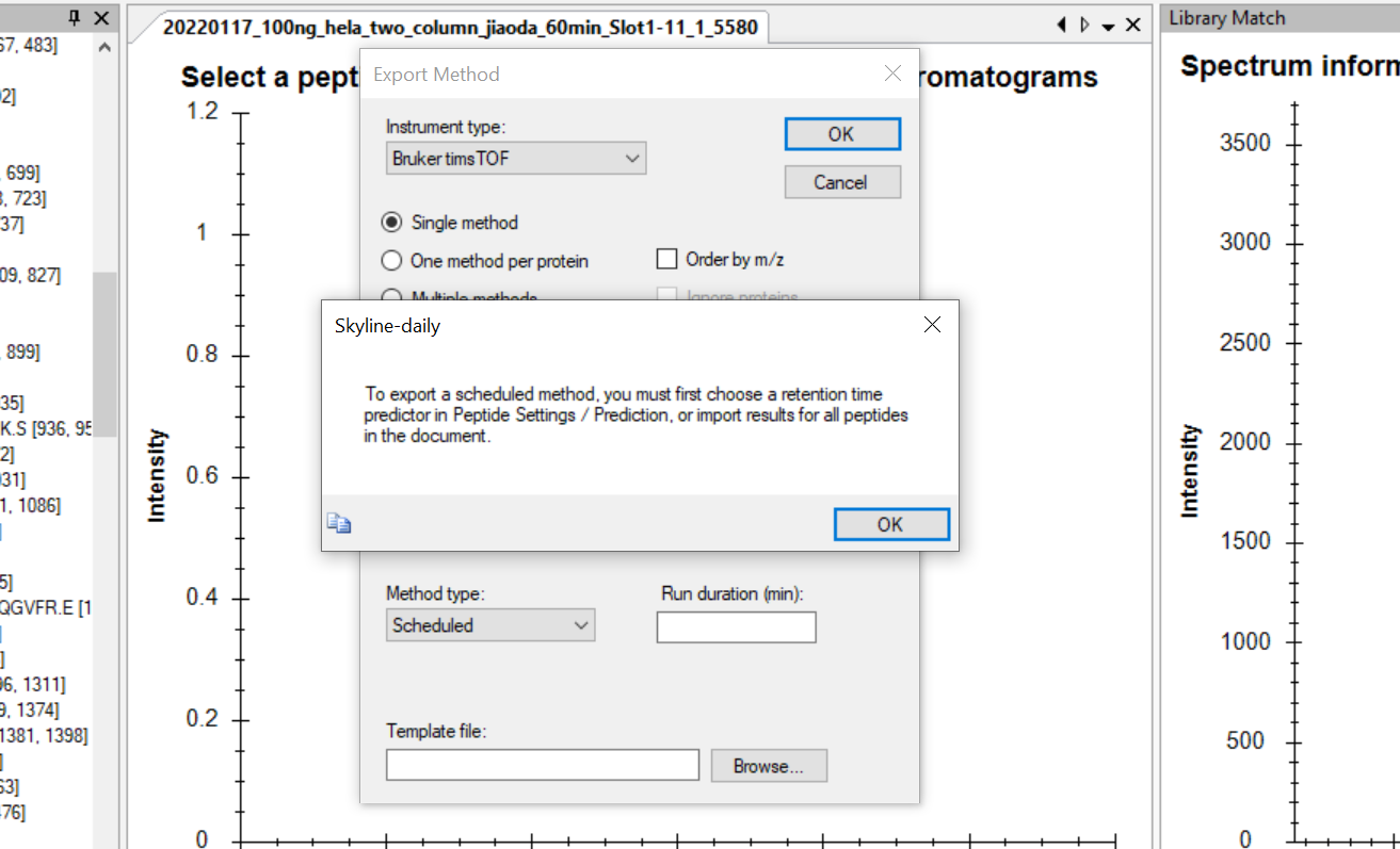 Another question is Skyline would request to add the retention time predictor when export method (the Skyline version I've used is 21.0.9.118) but I don't have the retention time predictor. Could you please provide the retention time predictor or other suggestion that I can avoid this problem?