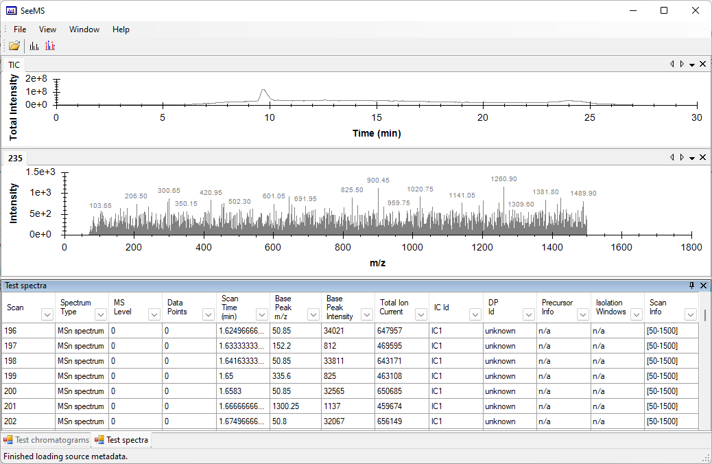 SeeMS.exe will let you look at the spectra in that file. I do not understand what kind of spectra they are.