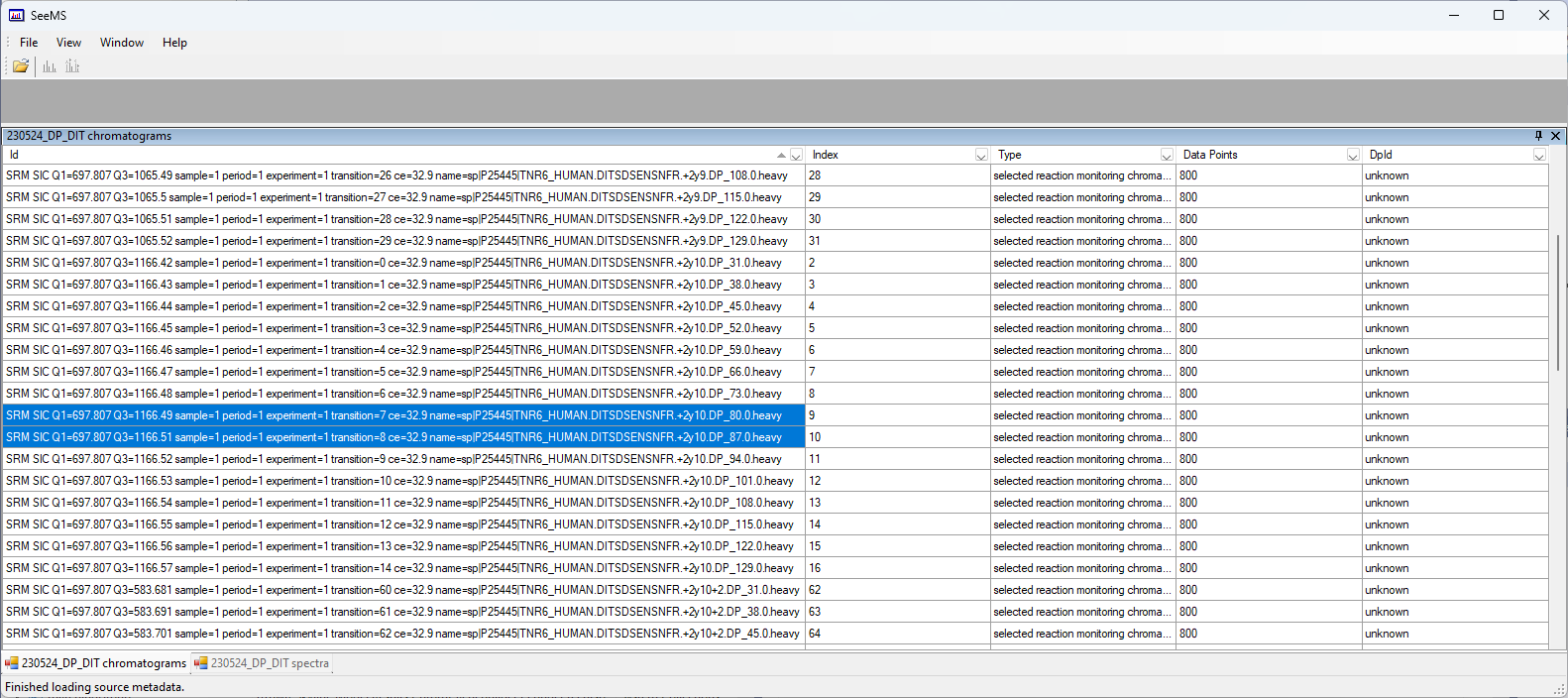 When I look at the wiff file "230524_DP_DIT.wiff", it seems to be missing some chromatograms.