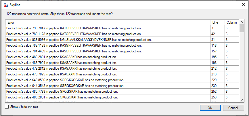 I encountered an error when trying to import a transition list (which I exported from another Skyline project); it is not extracting the isotopic peaks. I tried looking into the transition settings, but I couldn't find any restrictions there for the isotopic peaks. I added the Skyline file and transition list in the attachment. Could you help me with this?