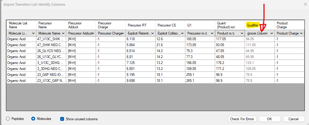 Another question, during small molecular transition list importing, how to add qualifier data? Which category I should choose from the menu (see attached)