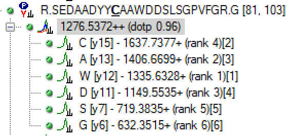 If I want to only work with the top 3 most abundant transitions in the spectra, it would be correct to look at the number in [ ] as opposed to using the library rank #, is this correct? So when I set the Results filter to 3 for 'Max transition peak rank', I am limiting it to the top 3 most abundant transitions? This is actually what I would like to do and may have misunderstood using the library rank.