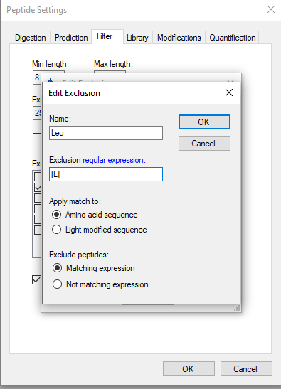 After that, you can right-click on the "Peptide" column and choose "Filter" and set the filter to "Does not contain" and "L".