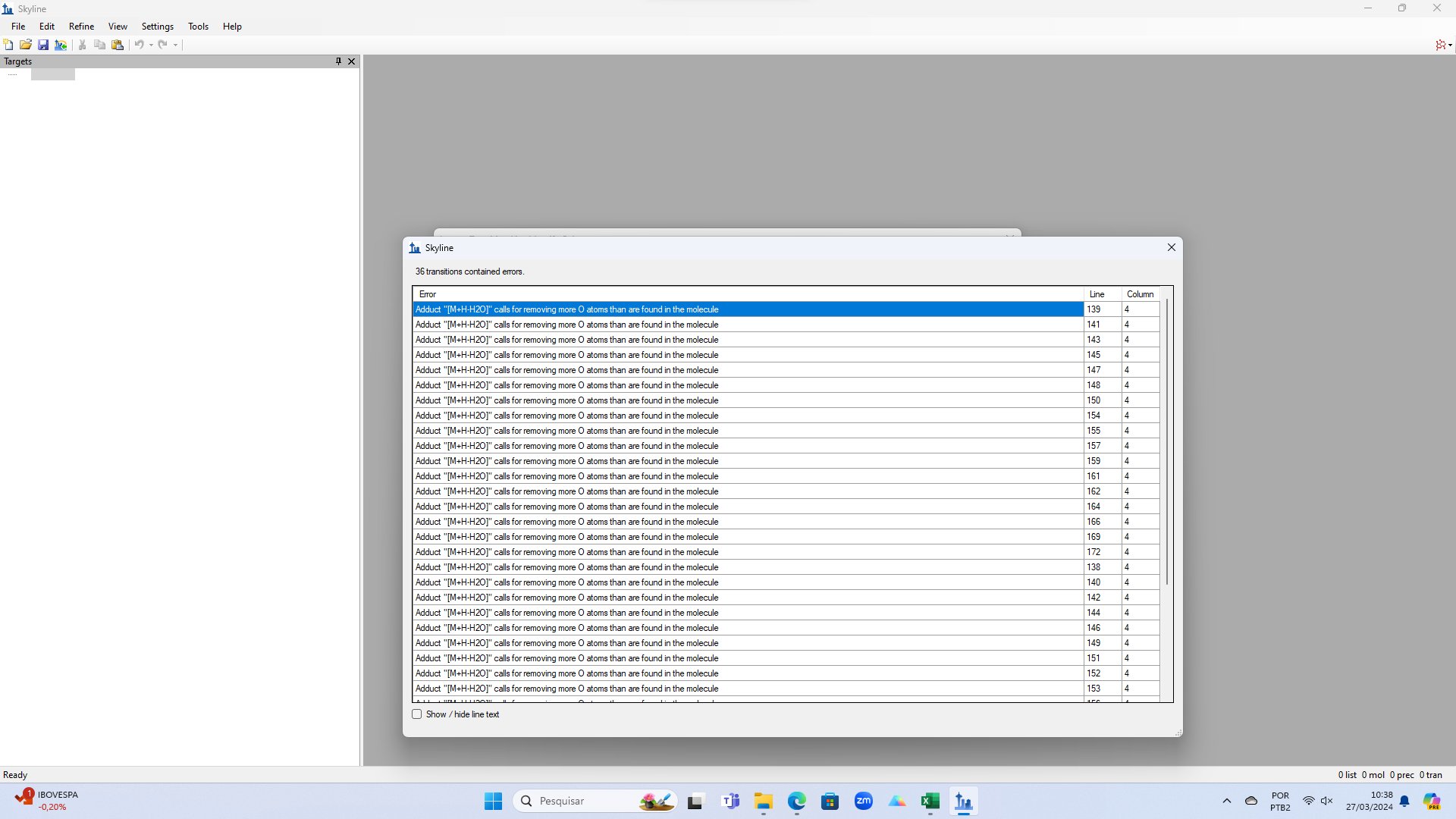 Hello, I trying insert a transition list with M+H-H2O as adduct, but i receive the error message " calls for removing more O atoms than are found in the molecule" . What can be wrong in my list?