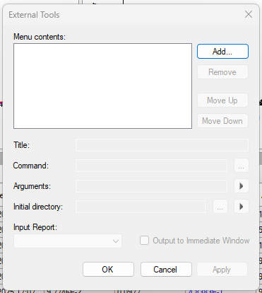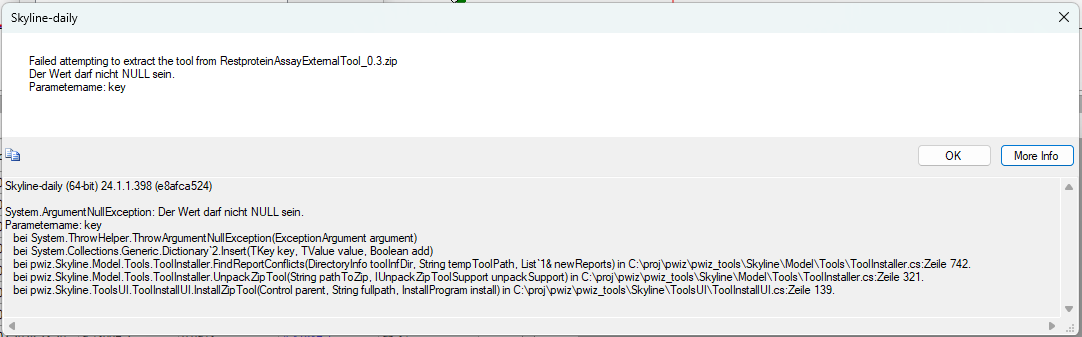 Thank you for the swift response. I've uploaded the file (Tools.zip). Attached I'm sending screenshots of the error message and of the External Tools window. The latter is completely empty in the installation. I don't know whether this is normal.