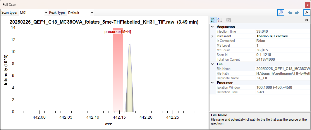 Secondly, the file you requested—I’m attaching it here, along with a file containing information about the folic acid standard (see folateMix file). In that file, you can clearly see the chromatogram for the precursor ion.
