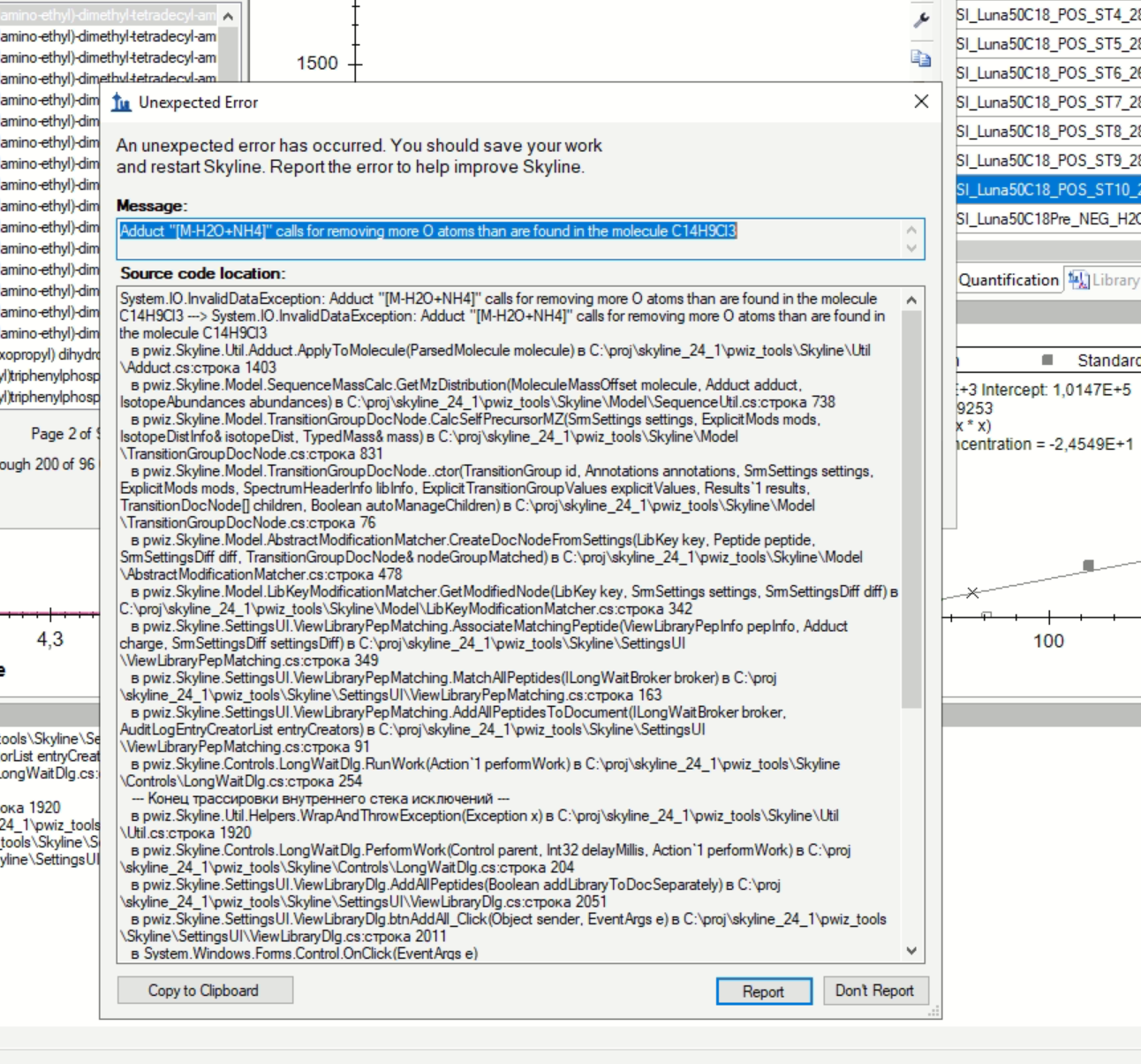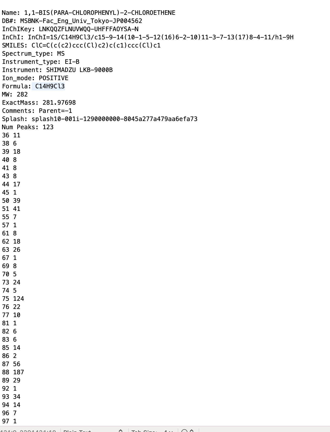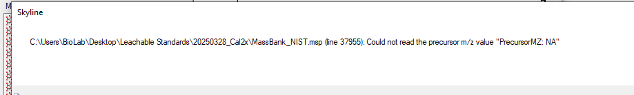 Thanks, I will download that library and work with it. I am currently working on improving support for EI in Skyline, certainly a part of that is dealing with new dialects of MSP files. Though I still don’t know what water loss is supposed to mean with a molecule containing no oxygen? At any rate that should be handled more gracefully.