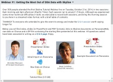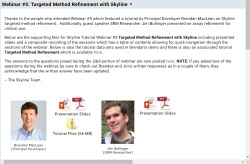 Each webinar has its own page (linked below) containing a recording of the webinar and all related information. The webinar recordings are about 90 minutes long with the last 30 minutes dedicated to Questions and Answers from the attending audience. Additionally, each webinar page contains the presentations, supporting tutorial data, and other related information. Even the most experienced Skyline users are likely to learn something new.