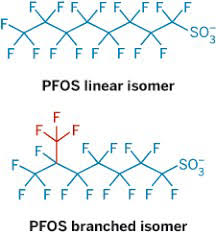 -In the PFAS world, it is a similar issue, the byproducts that are found in water streams contain both several different branched forms as well as a linear form (Image 2). The standard that we are able to purchase is also a mix of branched and linear because they are unable to sufficiently (or economically) separate the linear form from the various branched forms that may be occurring. The current protocol according to government standards is to integrate the whole mess and label it as a "total" quant that incorporates both forms (so long as ion ratios pass). In the end the toxicology to determine whether the branched or linear forms have a greater impact on human health falls to somebody smarter than I - hopefully they are smart enough to figure out how to synthesize pure standards...