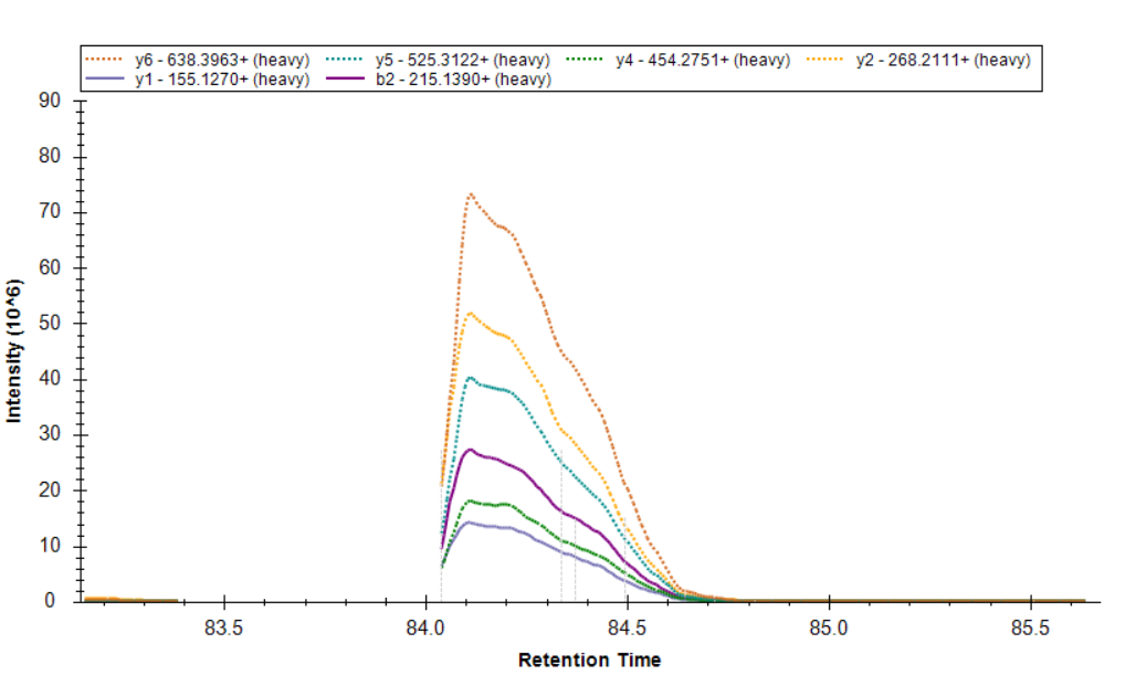 Chromatograms are displayed as dotted lines in Skyline when the Transition is "non-quantitative".