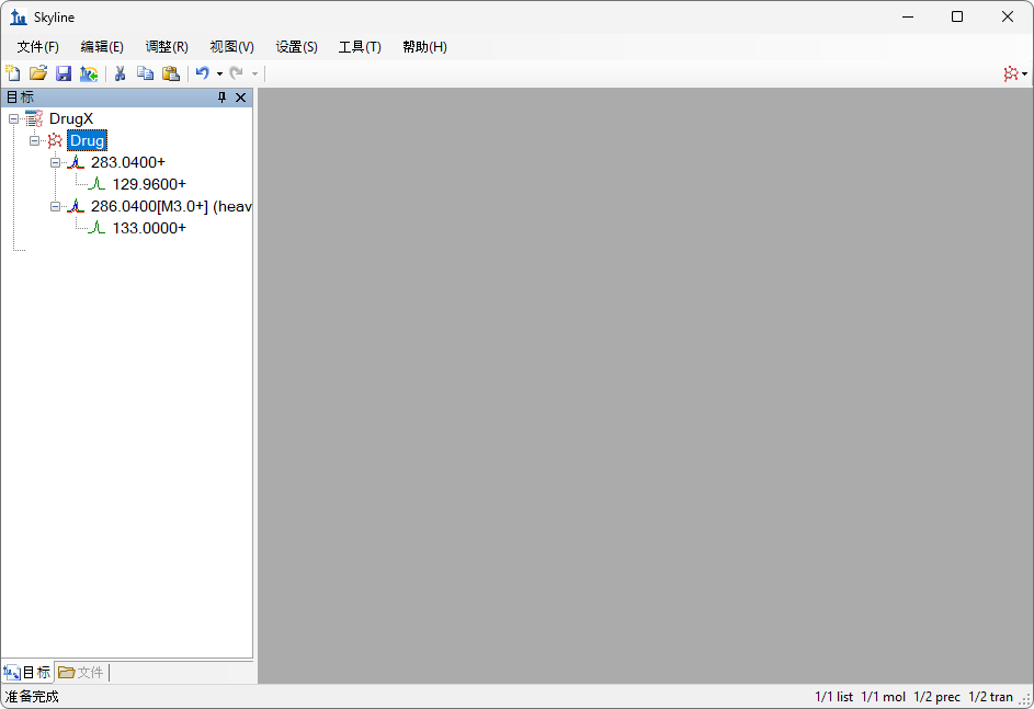 Skyline 将在小分子模式下运行,Skyline 窗口右上角 随之显示蛋白质图标
