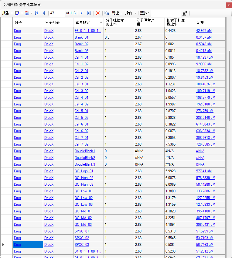 查看定量数据的一种捷径是再次使用文档网格,这次查看的是分子比率结果视图。