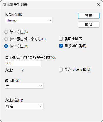 此时,导出离子对列表表单将显示如下: