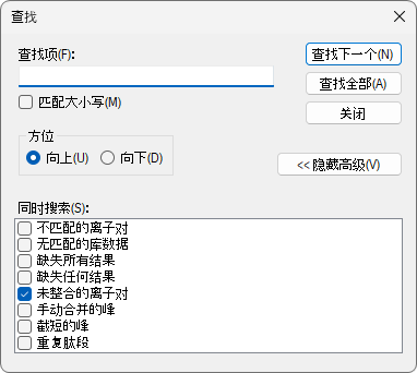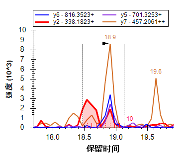 您将看到若干存在干扰的离子对,其信号强度低于最强离子对的 1%(按区域面积计算)。
