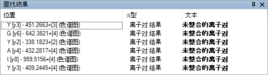 在 Skyline 窗口底部可以看到查找结果视图,其中显示了 6 个未整合的离子对: