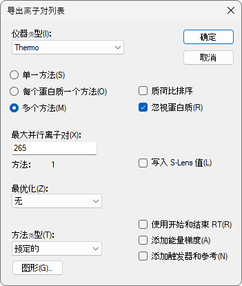 在您自己的实验中,可以选择直接导出仪器方法,从而避免手动加载离子对列表。您也可以