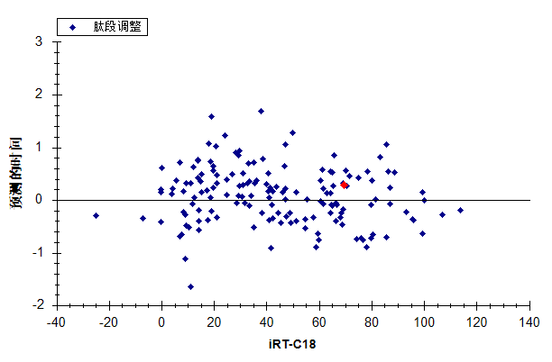 在将它转变为 iRT 之前,您可能想要使用前几次的非预定模式采集的数据,来创建您可以在多次重复测定中测量的预定模式方法,从而改善对平均保留时间的估计。如果仅仅进行一次测量,基本的统计学知识告诉我们,大约有 5% 的肽段将会出现在您所预测的平均值的 2 倍标准差之外。