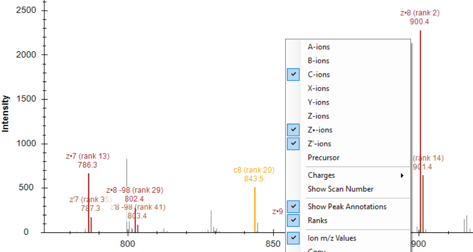 Skyline supports commonly used a, b, c, x, y, z ion types with masses calculated according to the Biemann classification [1]. While sufficient for most proteomics experiments, EAD (electron assisted dissociation) and related ionization methods produce some unusual ions that were impossible to track, specifically, z+1 radical ion and z+2 even electron ion[2]. Skyline now supports these ion types starting from version 21.2.1.404.