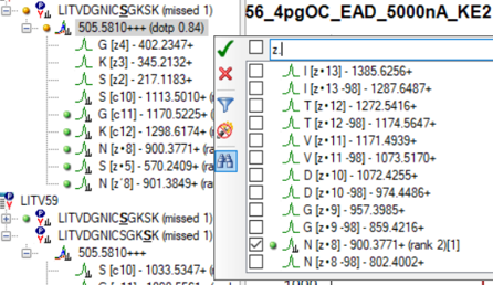 Since the • in z• is not a character that is easy to type on a standard keyboard, aliases were introduced to facilitate user input. A couple of places where the aliases are used are the Find function of the ion picker list and the Filter tab of the Transition Settings dialog. z. or z* can be used for z• ions and z’ or z” for z’ ions.