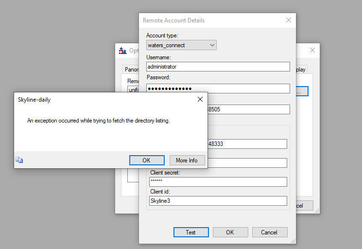 at pwiz.Skyline.ToolsUI.EditRemoteAccountDlg.<>c__DisplayClass23_0.<TestAccount>b__1(ILongWaitBroker broker) in C:\proj\pwiz\pwiz_tools\Skyline\ToolsUI\EditRemoteAccountDlg.cs:line 527