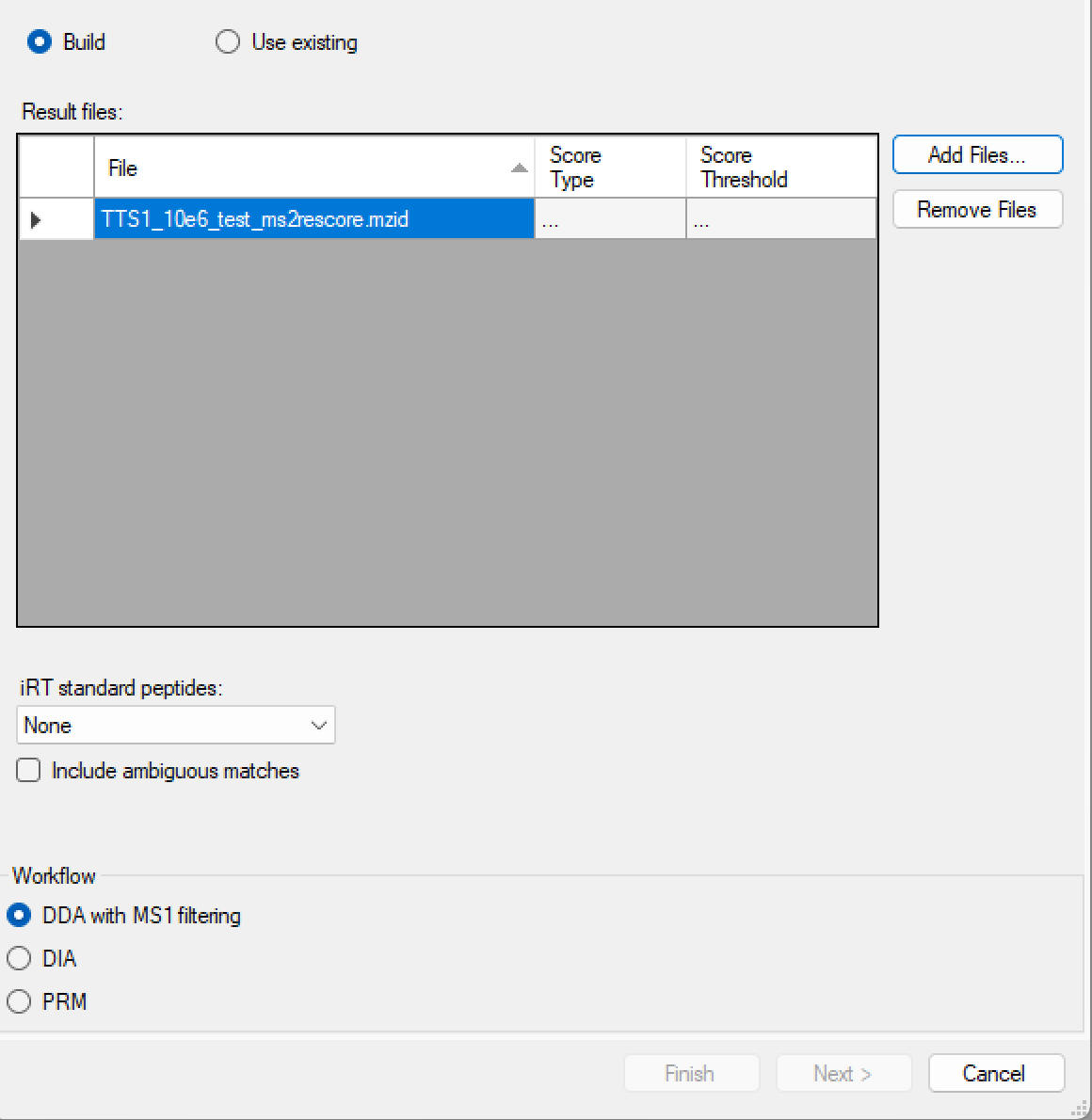 at pwiz.Skyline.Model.Lib.BiblioSpecLiteBuilder.BuildLibrary(IProgressMonitor progress) in C:\proj\skyline_25_1\pwiz_tools\Skyline\Model\Lib\BiblioSpecLiteBuilder.cs:line 152