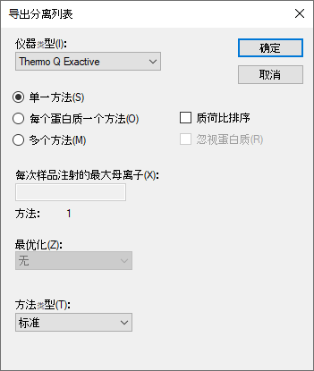 这个分离方案的格式针对的是 Thermo Q Exactive(本教程中的数据采集自该仪器),但 Skyline 也可以将其导出到其它几种仪器。
