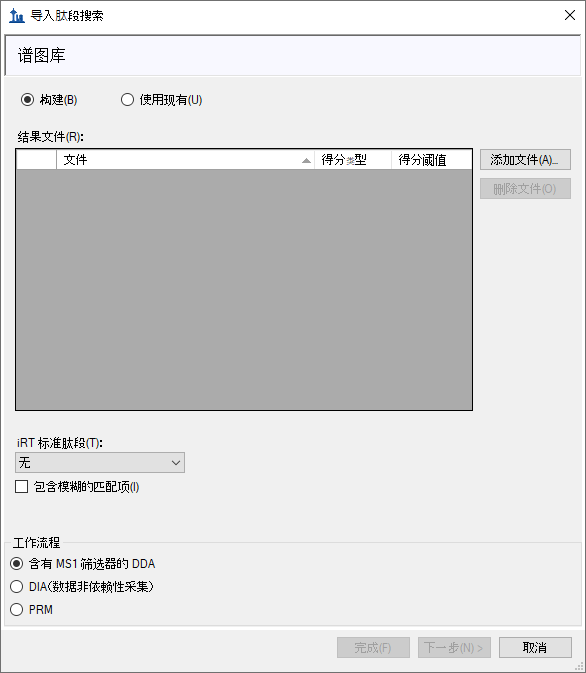 导入肽段搜索表单应显示如下:
