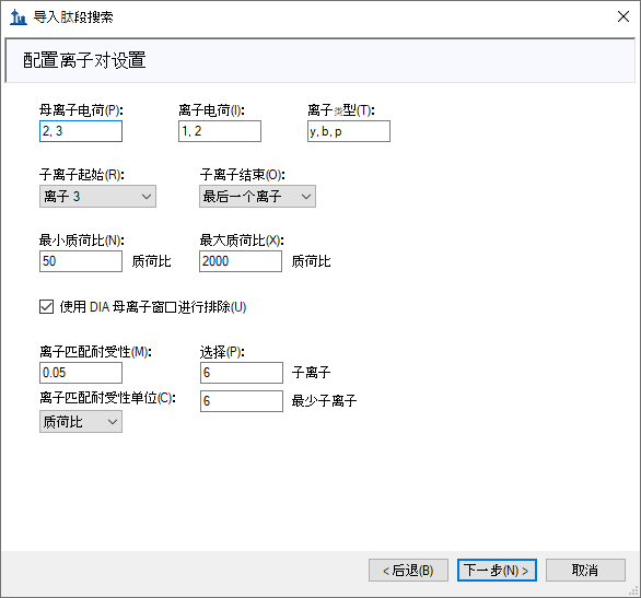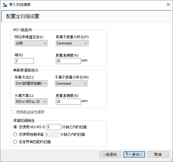 导入肽段搜索向导应显示如下: